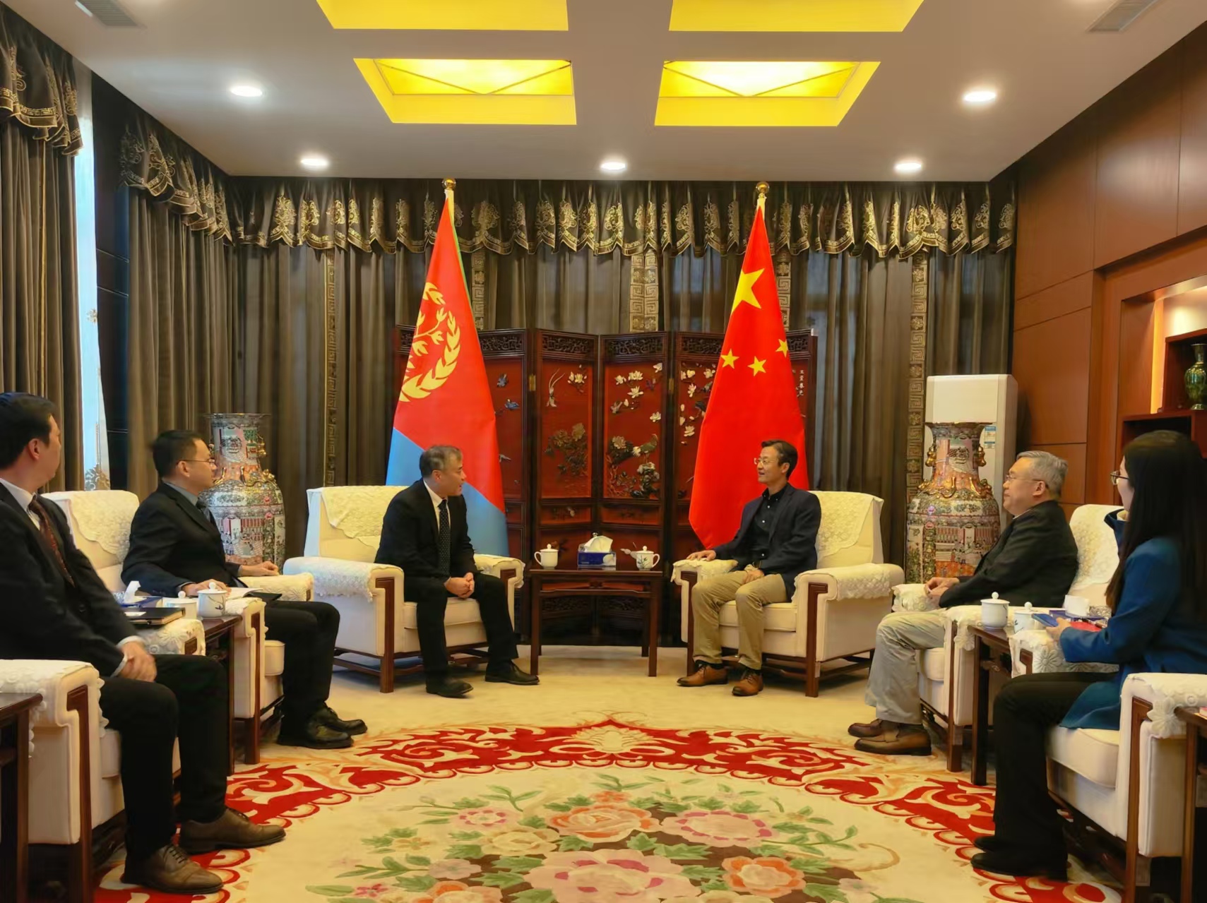 11月13日,李响大使在使馆会见中国恩菲工程技术有限公司副总经理时炜一行,深入了解企业生产经营情况,希企业抢抓机遇,坚持合法经营、安全生产,不断提升国际化、规范化水平,扎实推动在厄项目开展,助力深化双边经贸合作。使馆负责经济商务工作的参赞赖春生在座。