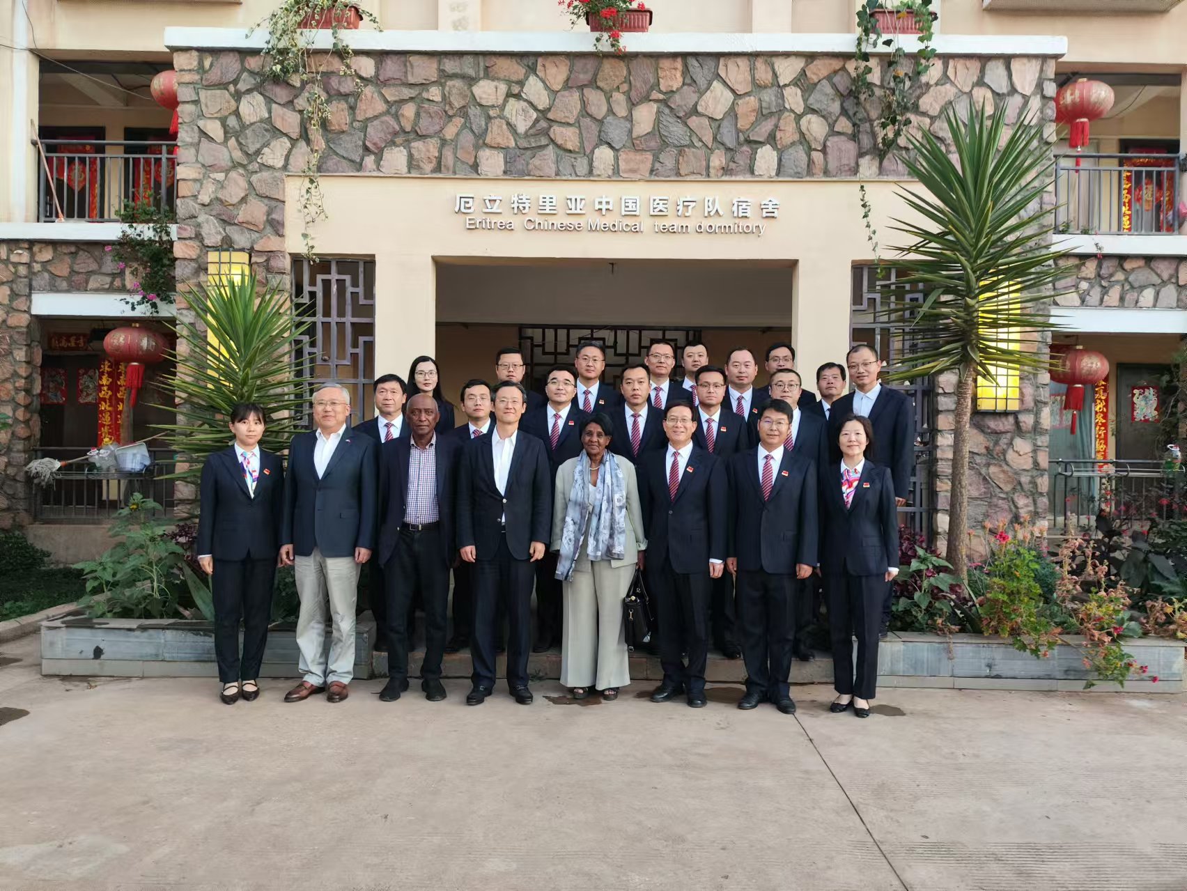 10月18日,李响大使与厄卫生部长阿明娜共同赴驻地看望第17批中国援厄立特里亚医疗队全体队员。使馆负责经济商务事务的参赞赖春生陪同参加。